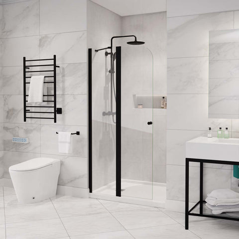 Ember Series 78 in. x 34 in. Framed Arch Fixed Shower Screen Door with 8mm Tempered Clear or Fluted Glass