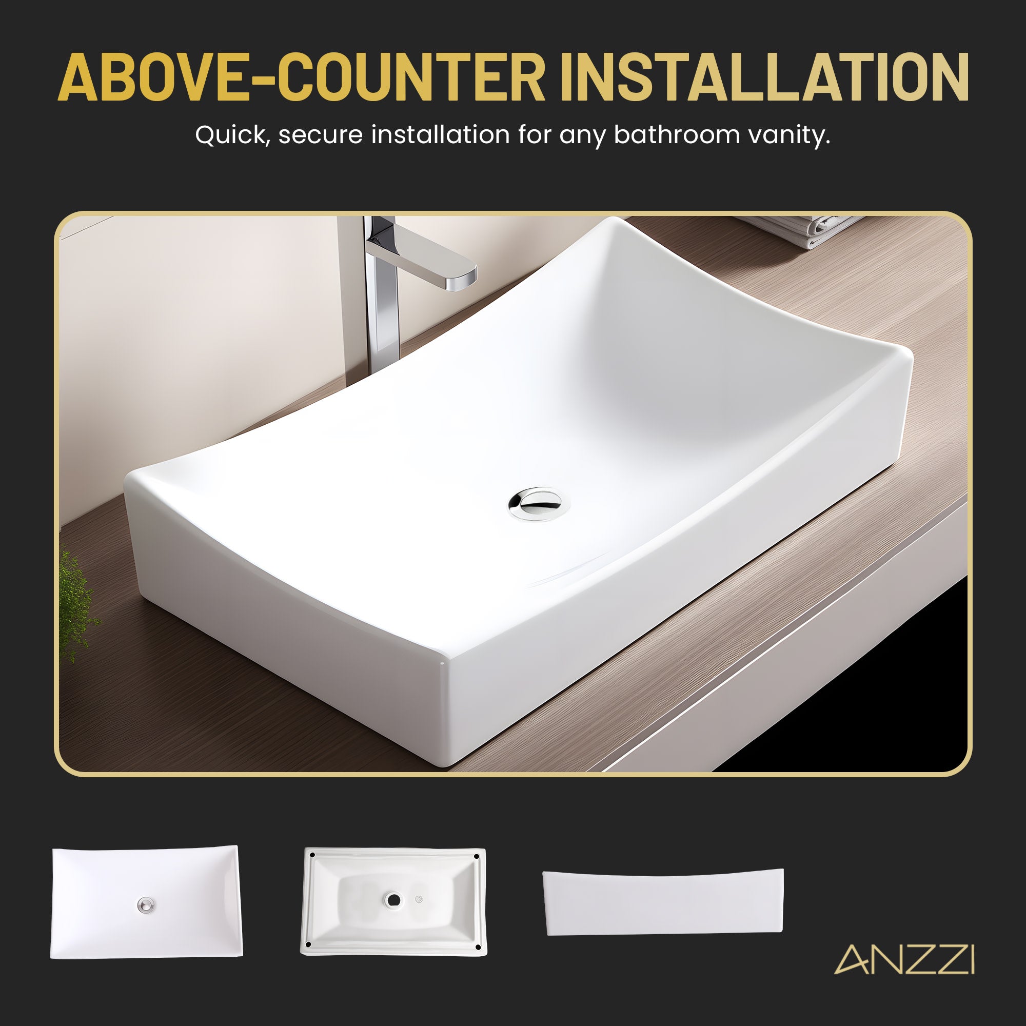Fall in love with your bathroom again. This gorgeous ANZZI 22 in. ceramic vessel sink brings hotel-luxury to your daily rituals with its smooth, modern silhouette and radiant white finish. The straight-edge design creates a stunning focal point that elevates your entire space. Built to stay beautiful through countless mornings together, it's easy to clean and designed to last. Transform your vanity into the elegant retreat you've always dreamed of; because every day should feel special.