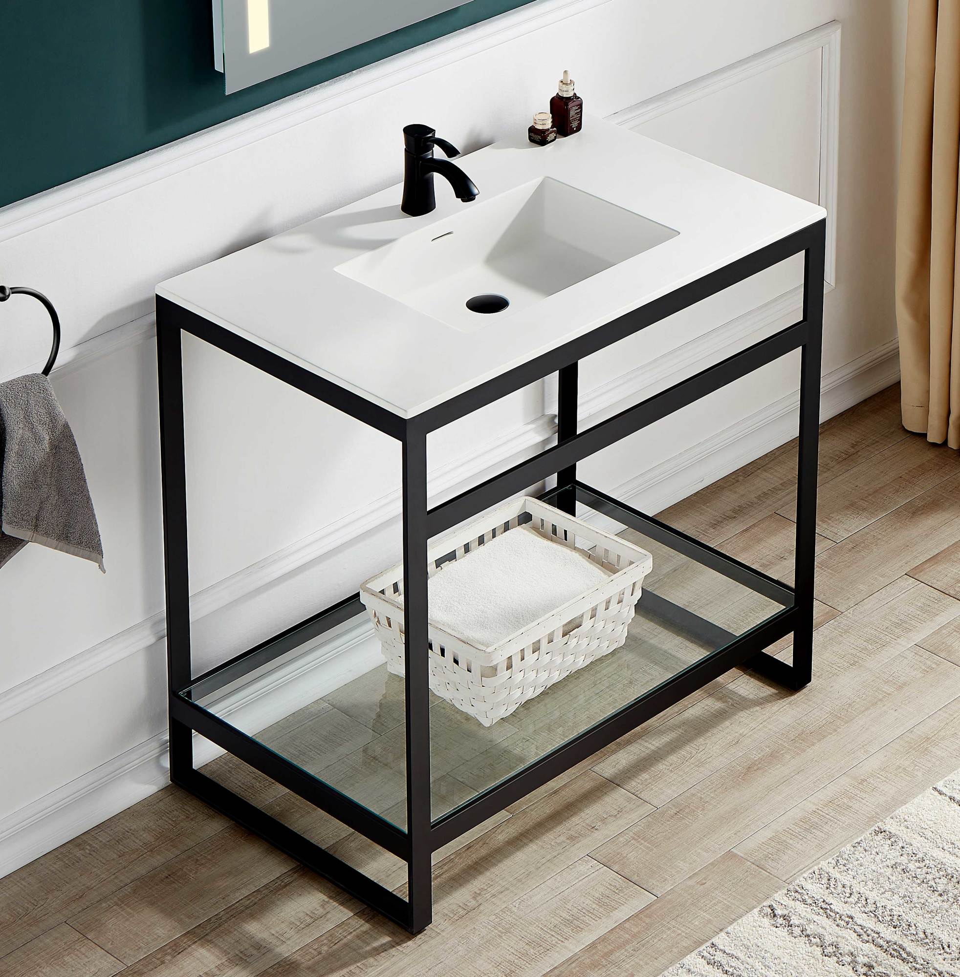Fresh and forward thinking, this ultramodern bathroom update breaks away from the everyday with its avant-garde styling and angular sensibility. This beautiful console Sink is gel-coated Glossy White and crafted from man-made stone.