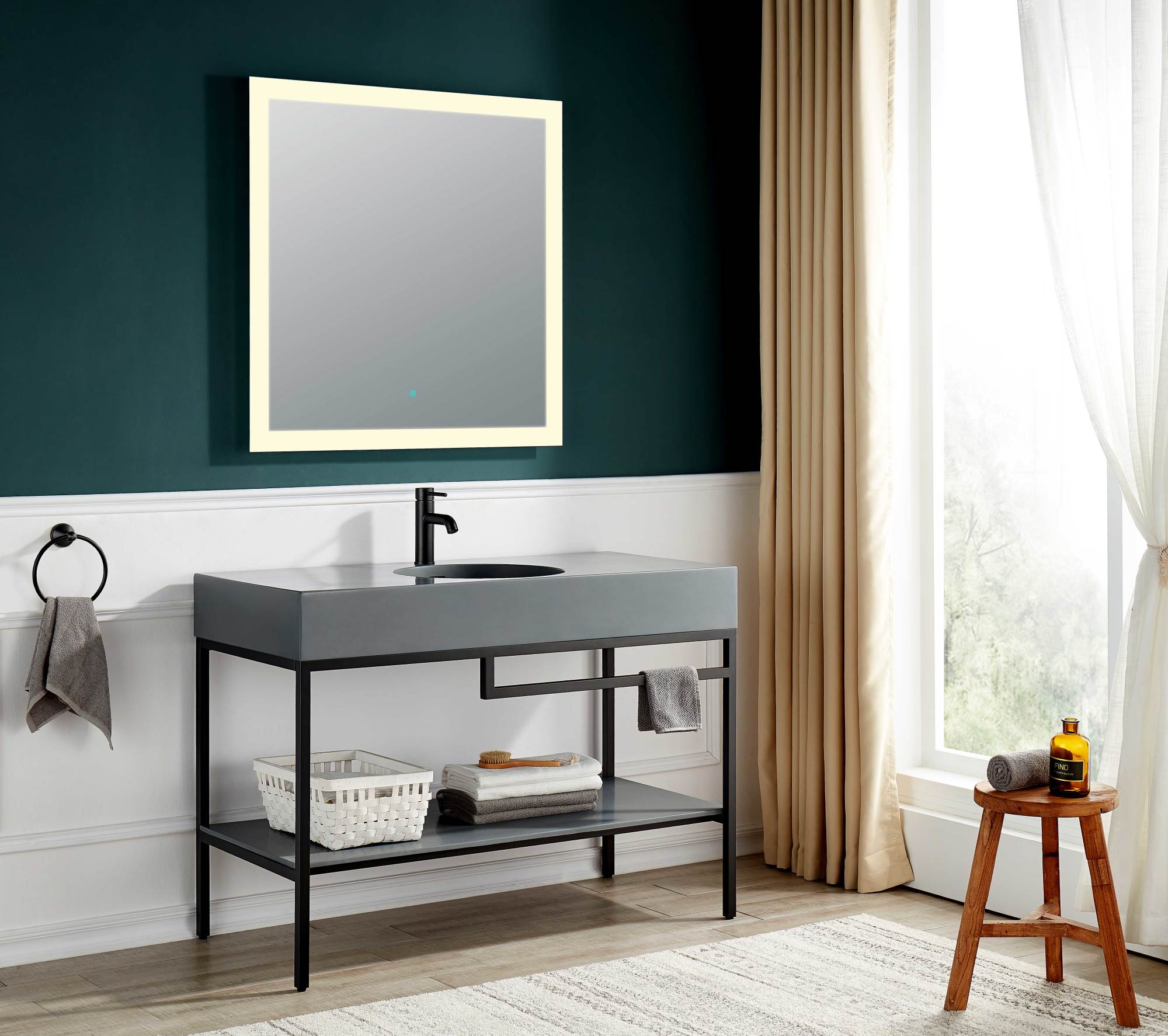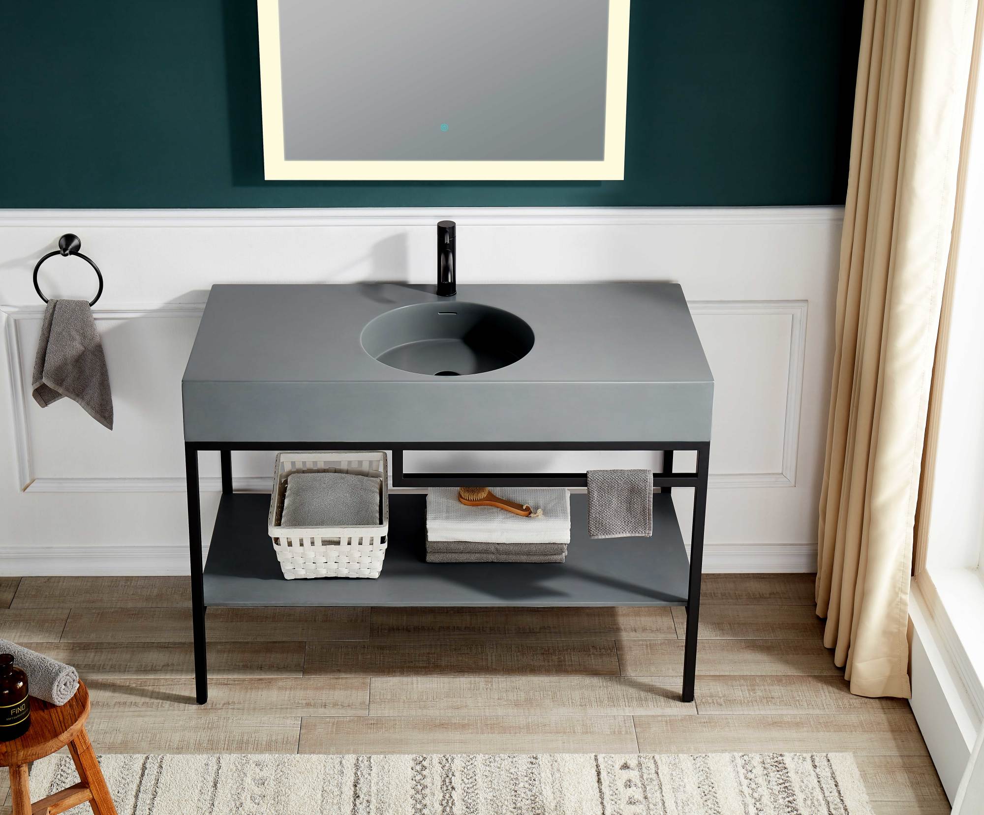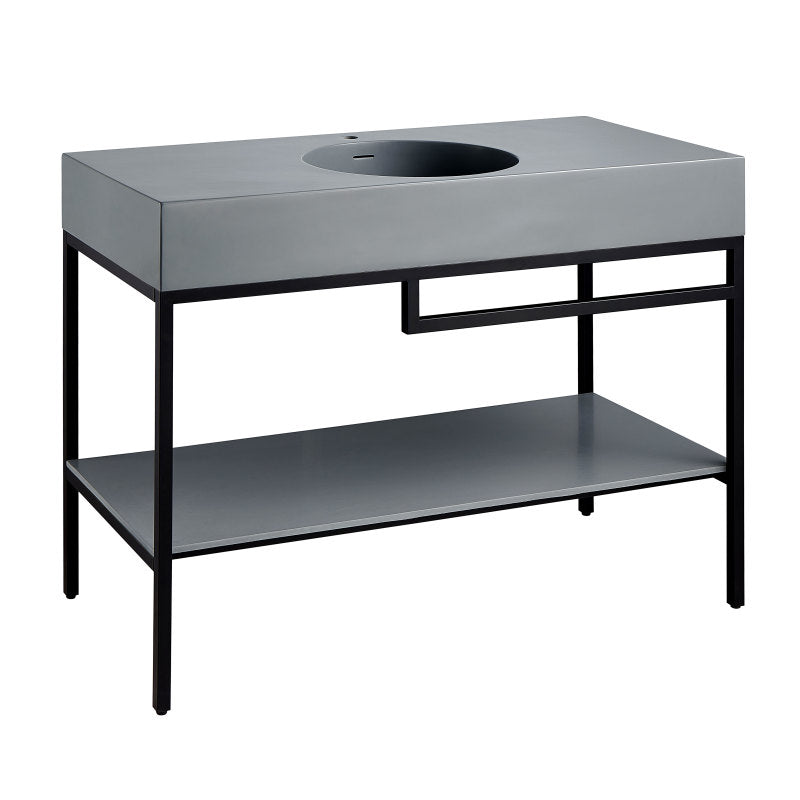 Guests will be impressed with this fashion-forward bathroom update! Our Siena console sink stands out with an avant-garde frame design, crafted from stainless steel and finished in a dramatic Matte Black powder coat. The premium-quality Matte Grey sink and counter top are made of tough gel-coated resin to make sure they stand the test of time. A clever built-in towel rack keeps your towels and washcloths handy, while the matte grey stone sheet bottom panel creates a perfect storage space for all your bathroom necessities.