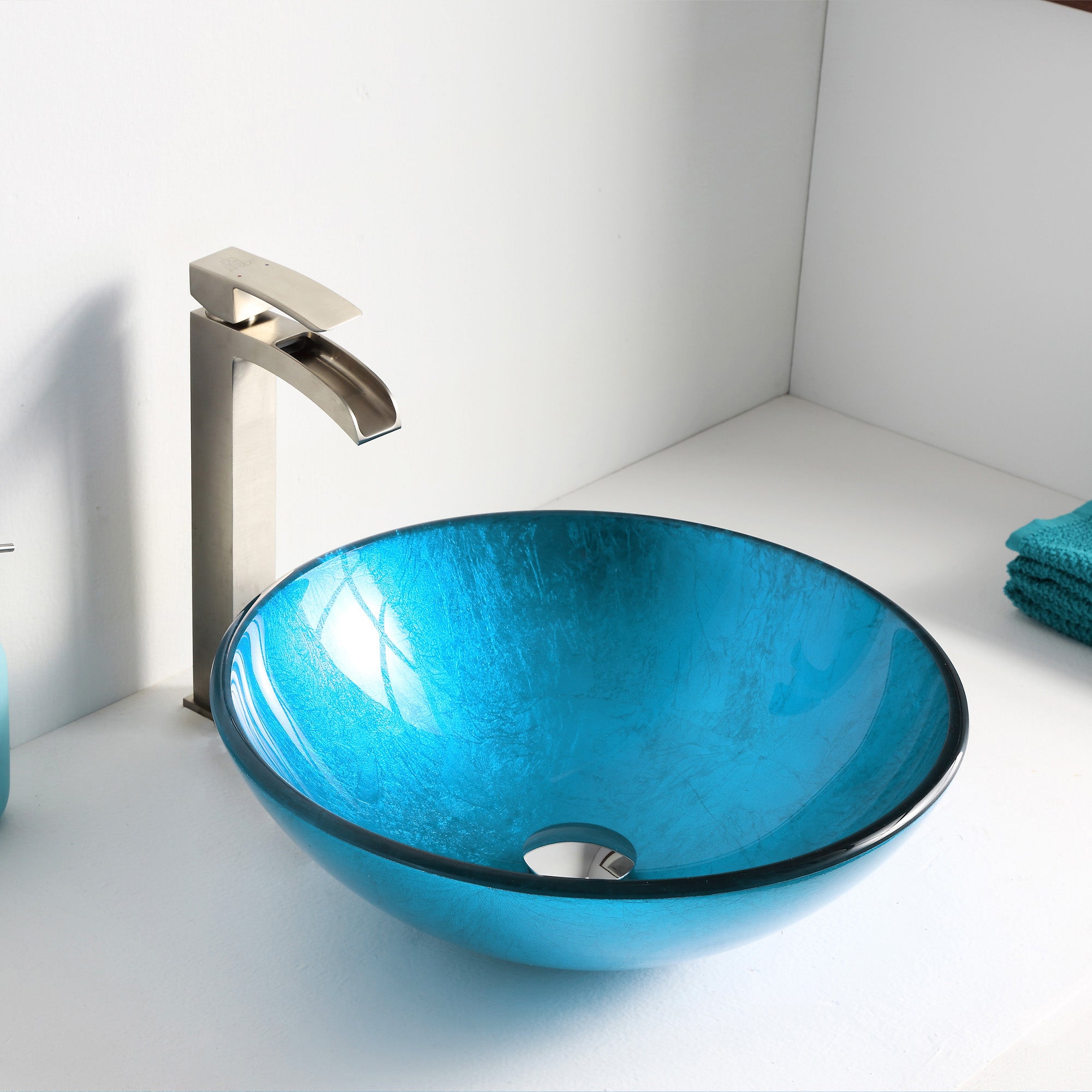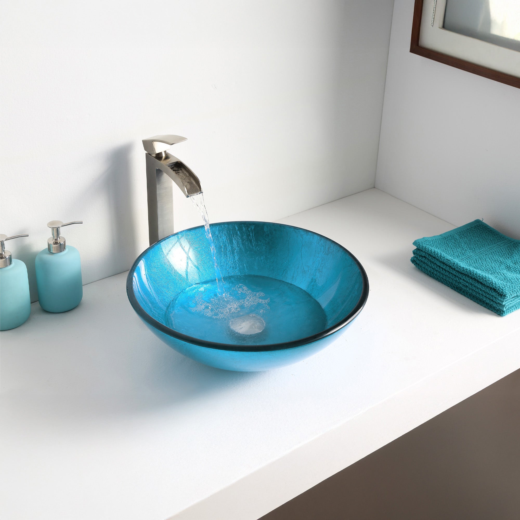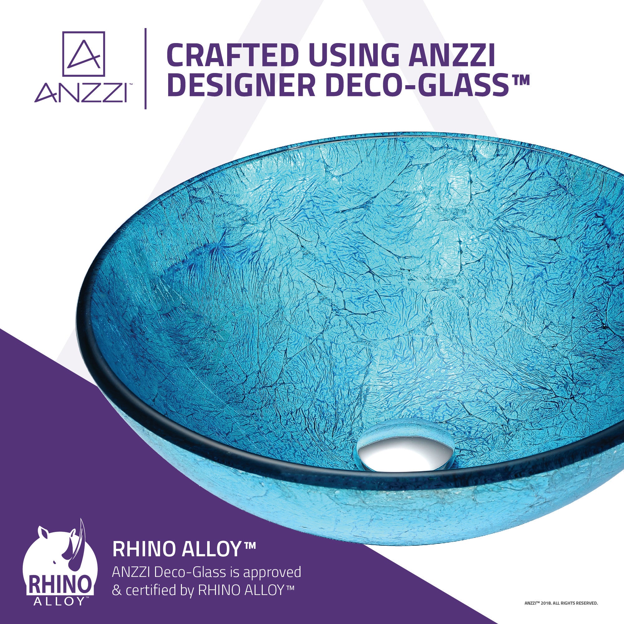 The ANZZI Accent Series sink is a traditionally crafted round vessel sink adorned in an Ice Finish. Each ANZZI vessel sink is formed using RHINO ALLOY certified high tempered Deco-Glass material. The result is a dynamically shaped and captivating vessel centerpiece for any bathroom counter.