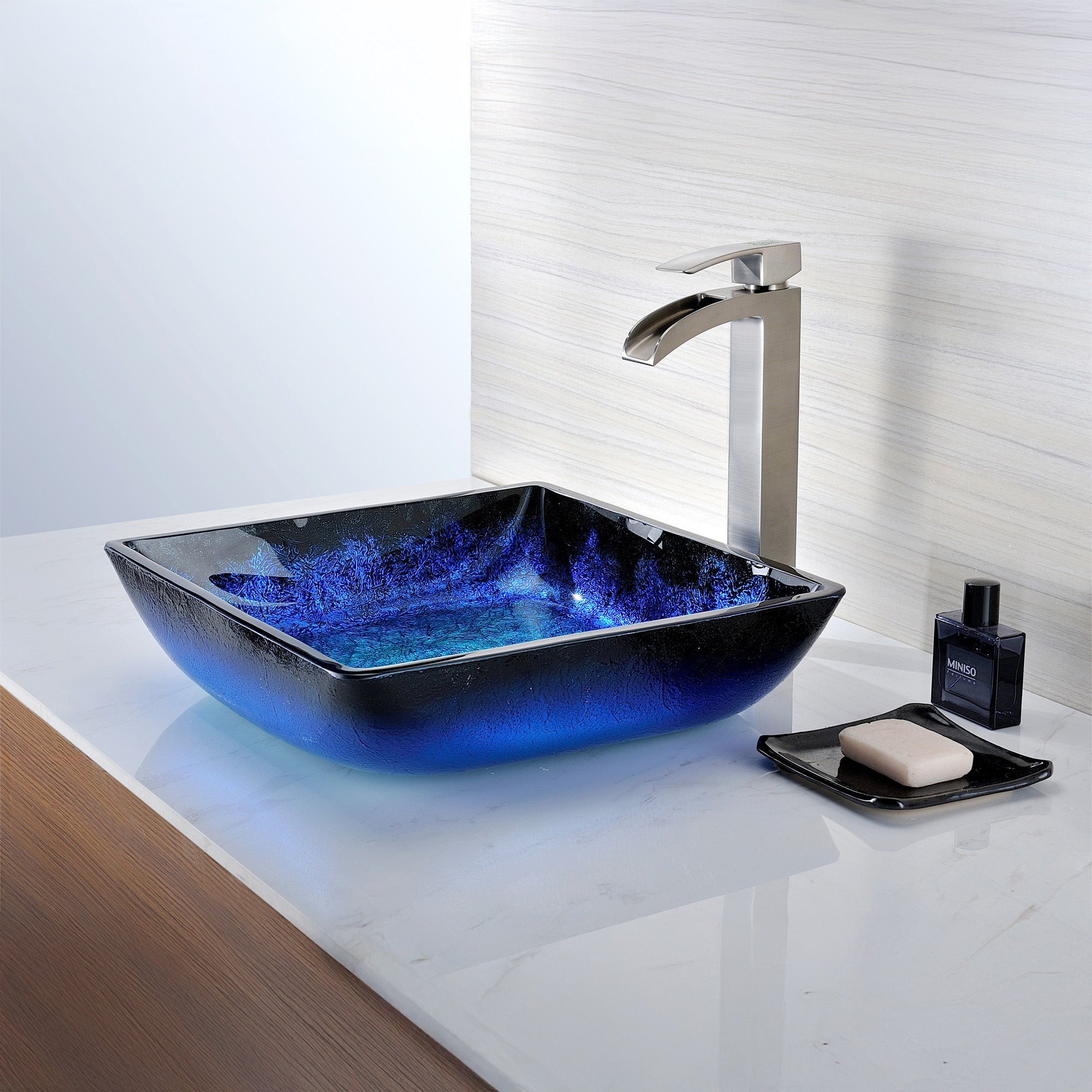 The ANZZI Viace Series sink is a traditionally crafted squared vessel sink adorned in a Blazing Blue Finish. Each ANZZI vessel sink is formed using RHINO ALLOY certified high tempered Deco-Glass material. The result is a dynamically shaped and captivating vessel centerpiece for any bathroom counter.