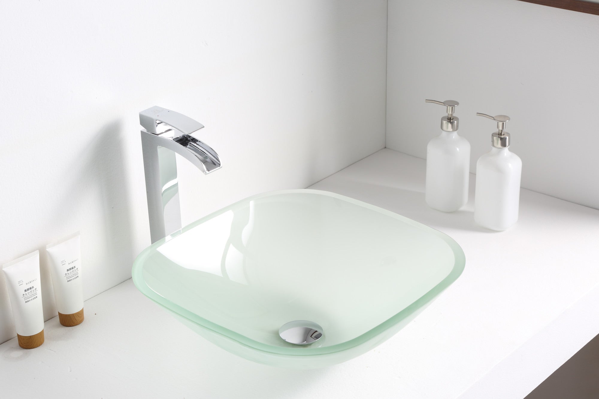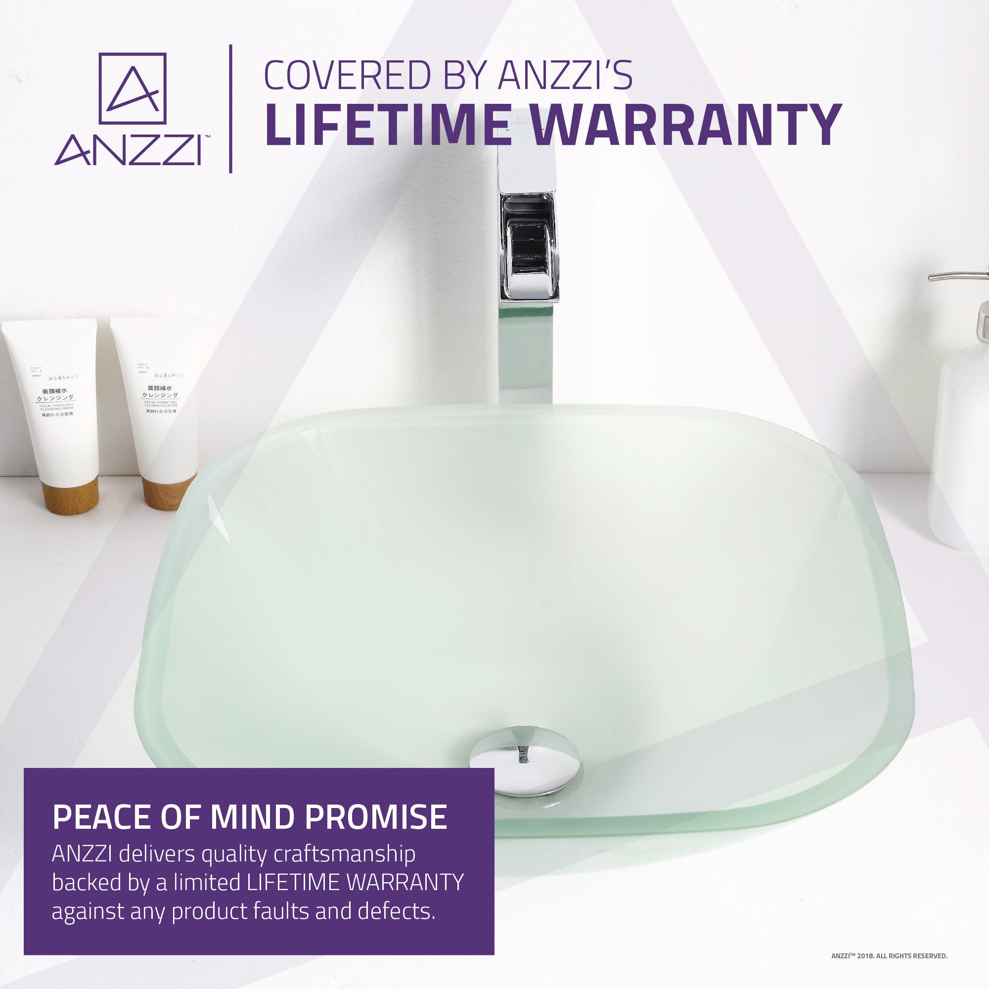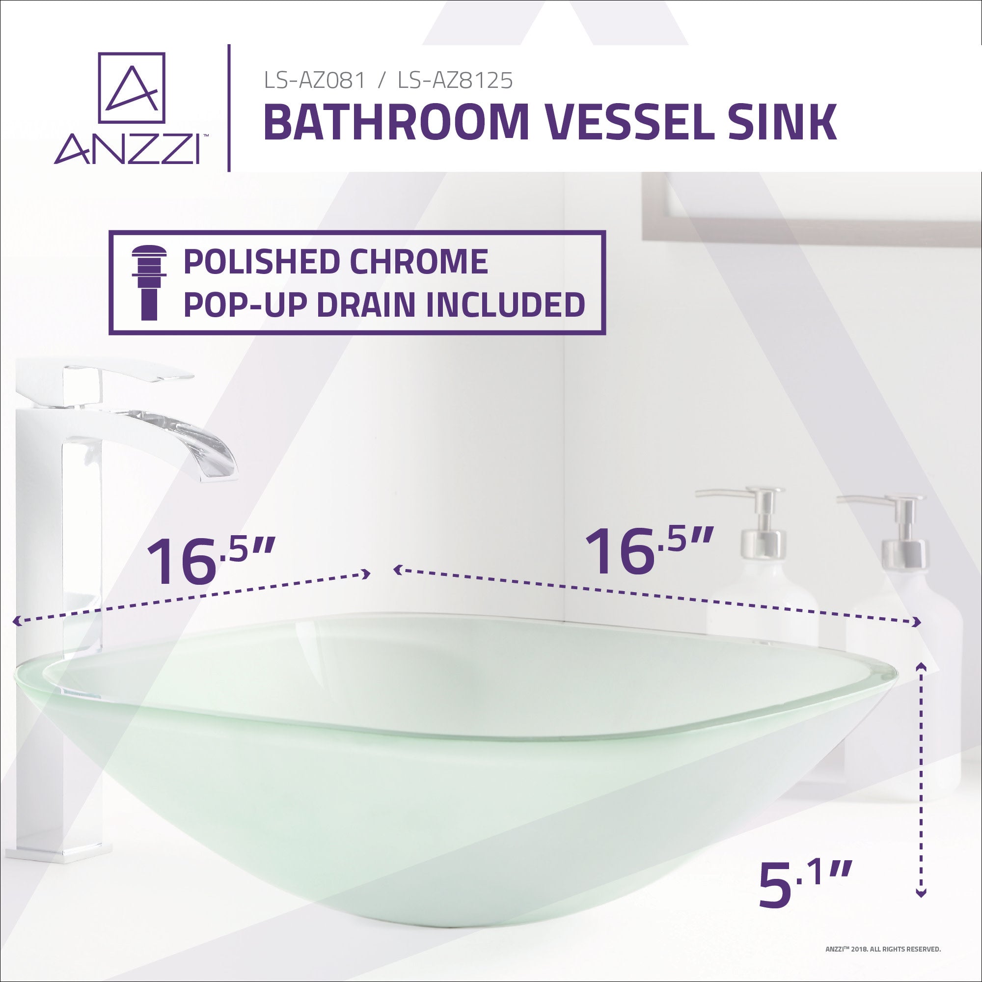 The ANZZI Vista Series sink is a traditionally crafted squared vessel sink adorned in a Lustrous Frosted Finish. Each ANZZI vessel sink if formed using RHINO ALLOY certified high tempered Deco-Glass material. The result is a perfectly shaped dynamically captivating vessel centerpiece for any bathroom counter.