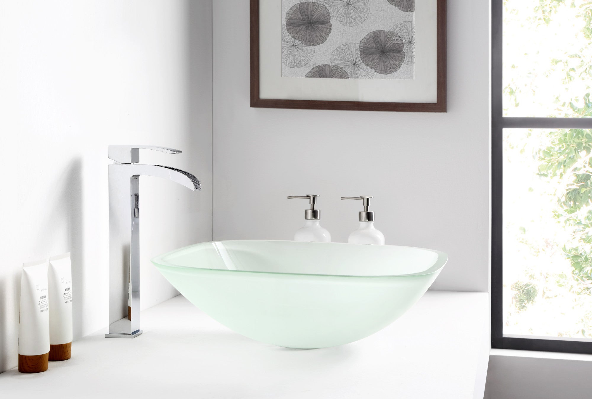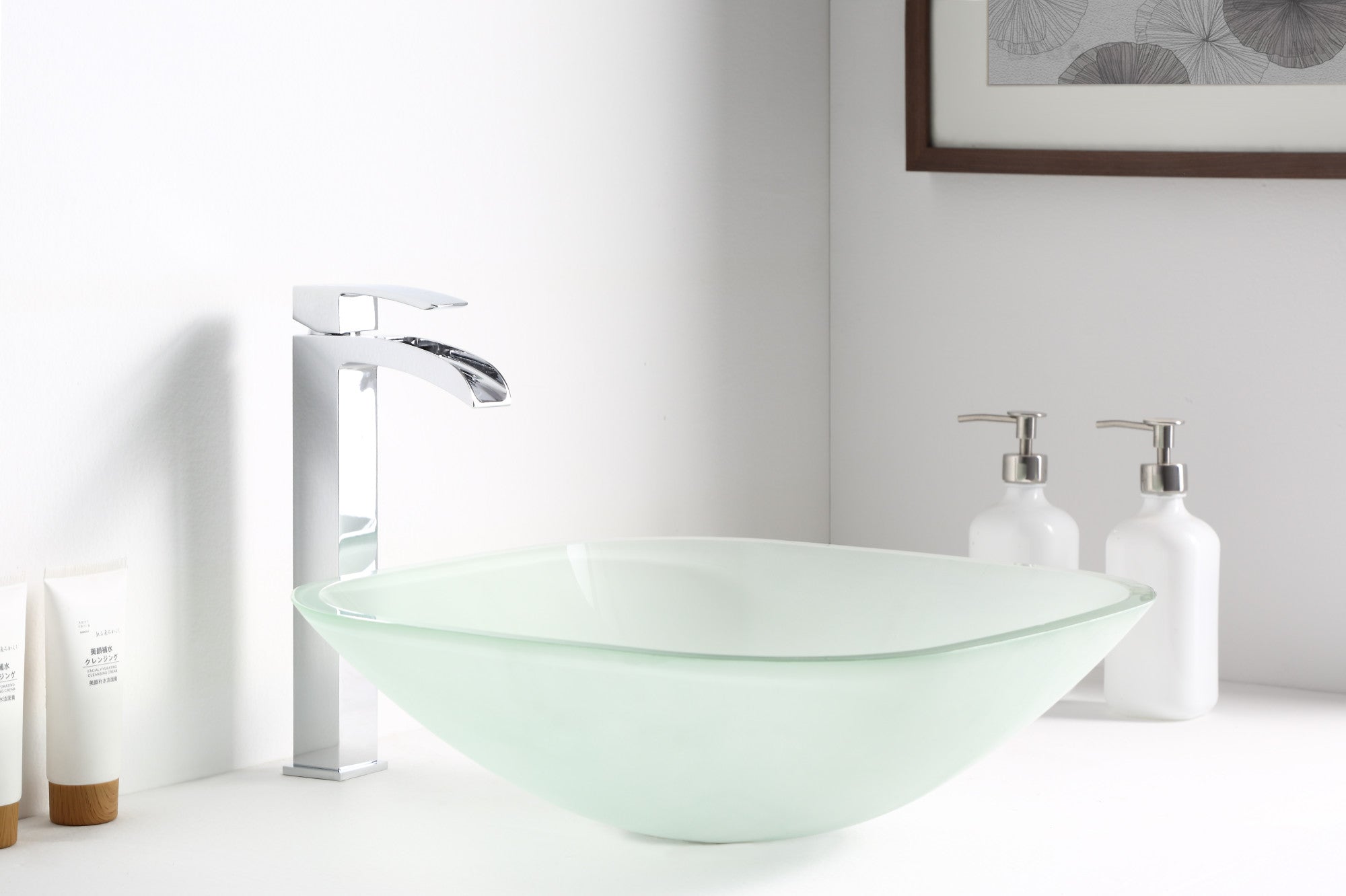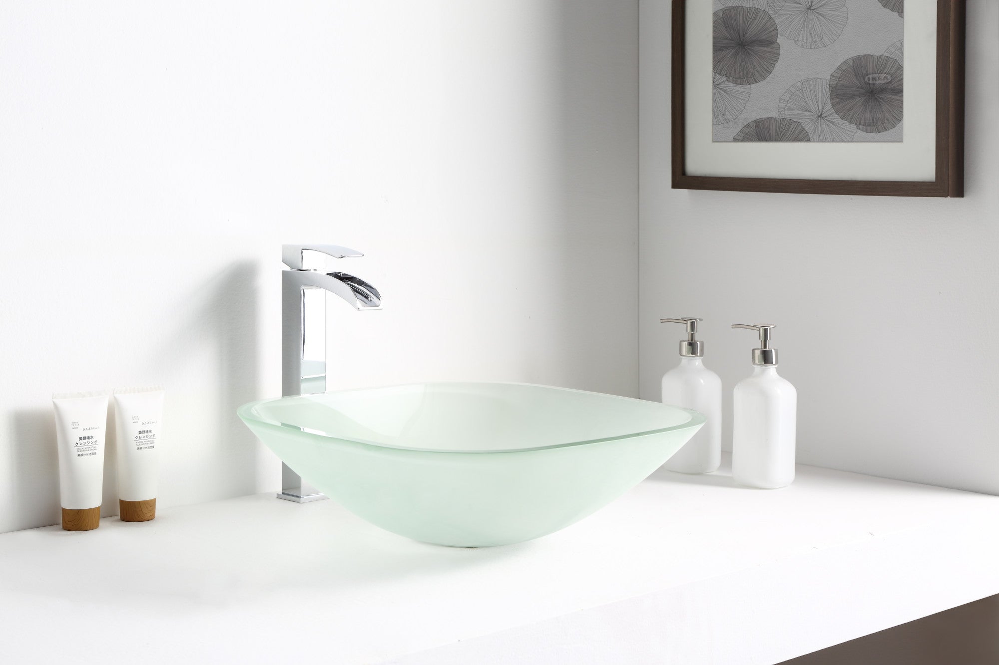 The ANZZI Vista Series sink is a traditionally crafted squared vessel sink adorned in a Lustrous Frosted Finish. Each ANZZI vessel sink if formed using RHINO ALLOY certified high tempered Deco-Glass material. The result is a perfectly shaped dynamically captivating vessel centerpiece for any bathroom counter.