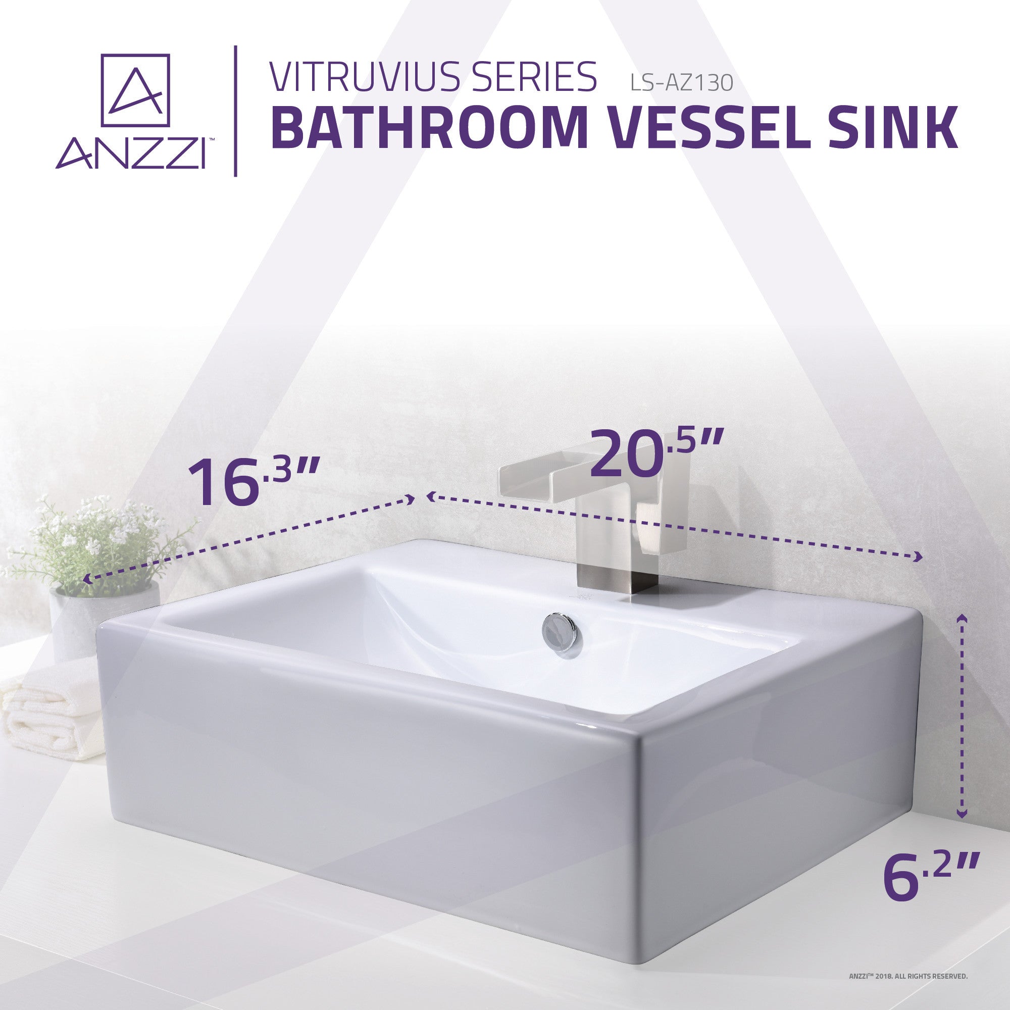 Introduce an exquisite piece of modern contemporary artistry to your wash room with the ANZZI Vitruvius Series Vessel Vitreous China bathroom sink. The ANZZI Vitruvius is crafted using the finest quality Vitreous China resulting in a smoothly polished basin with the delicate features of fine china and the stubborn durability of high end ceramics. ANZZI continues to deliver the latest trends and modern styles to your home to help you build your ideal living space.