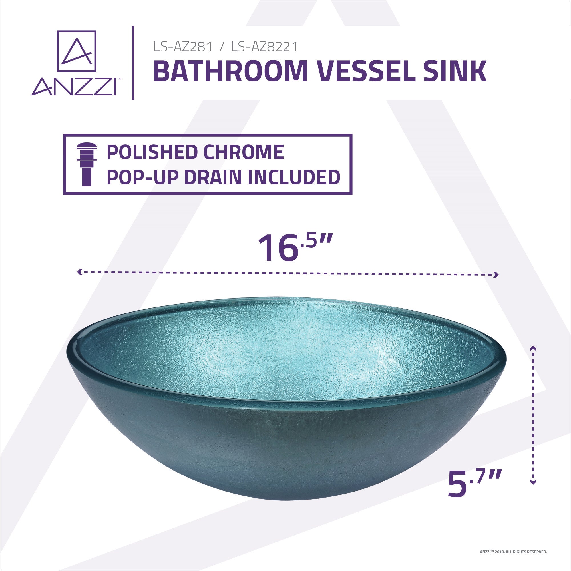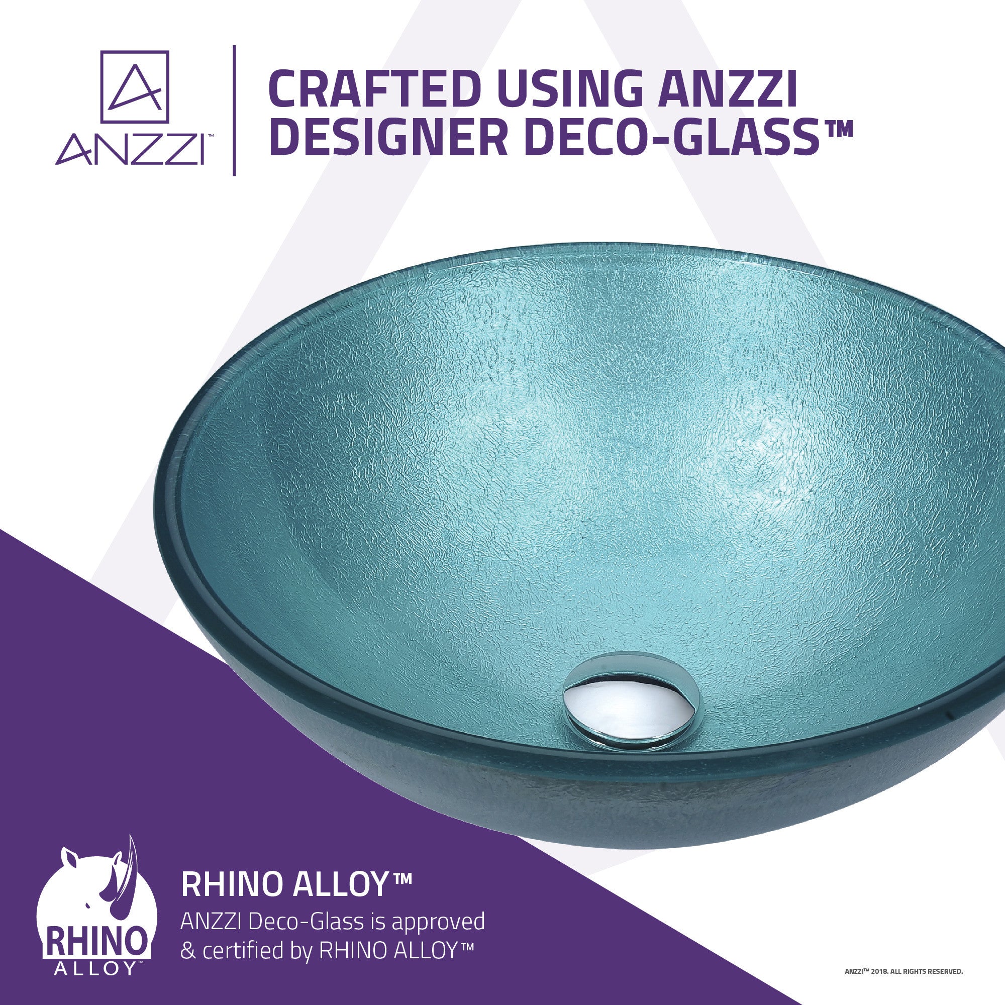 The ANZZI Posh Series sink is a traditionally crafted round vessel sink adorned in a Coral Blue finish. Each ANZZI vessel sink is formed using RHINO ALLOY certified high tempered Deco-Glass material. The result is an elegantly shaped and captivating vessel centerpiece for any bathroom counter.