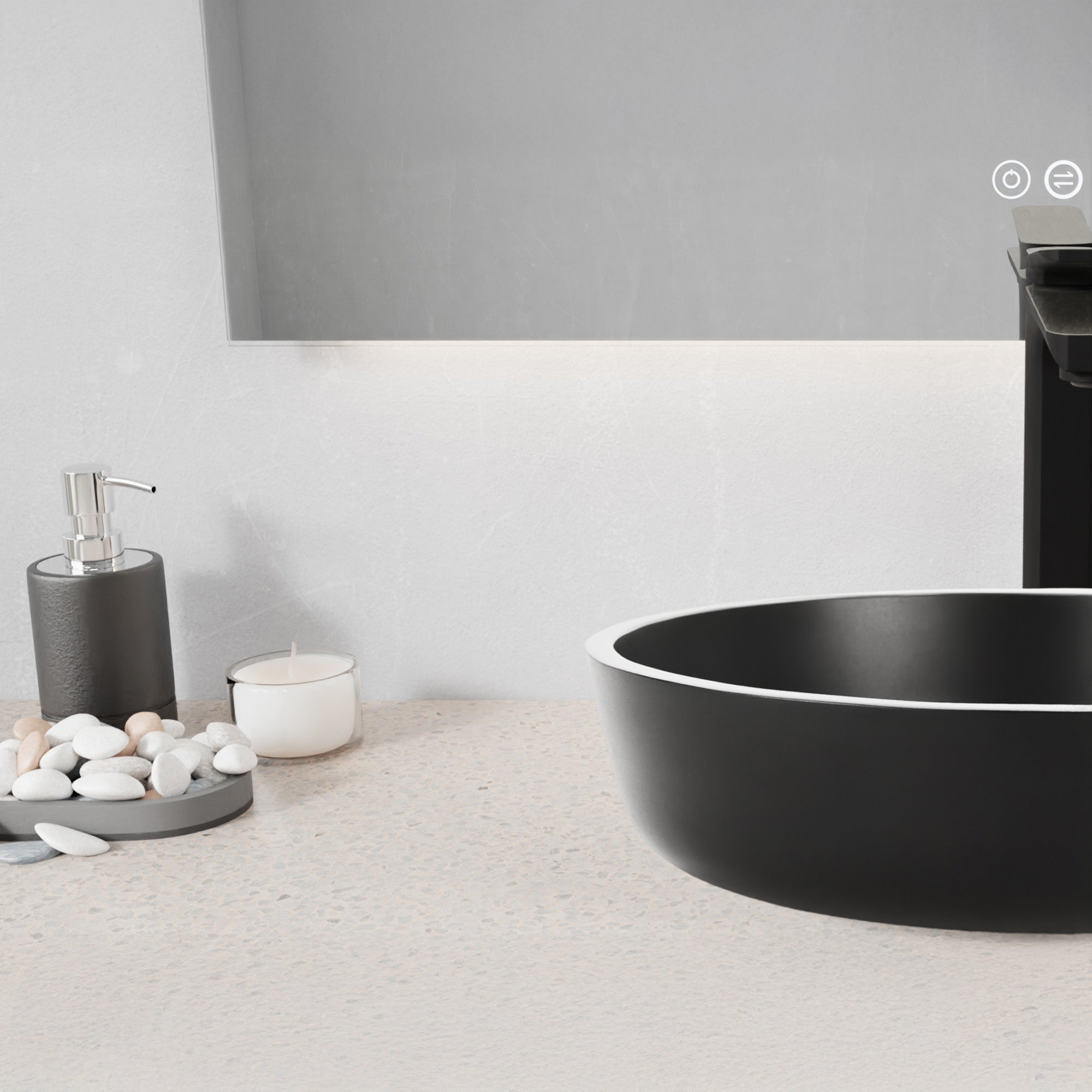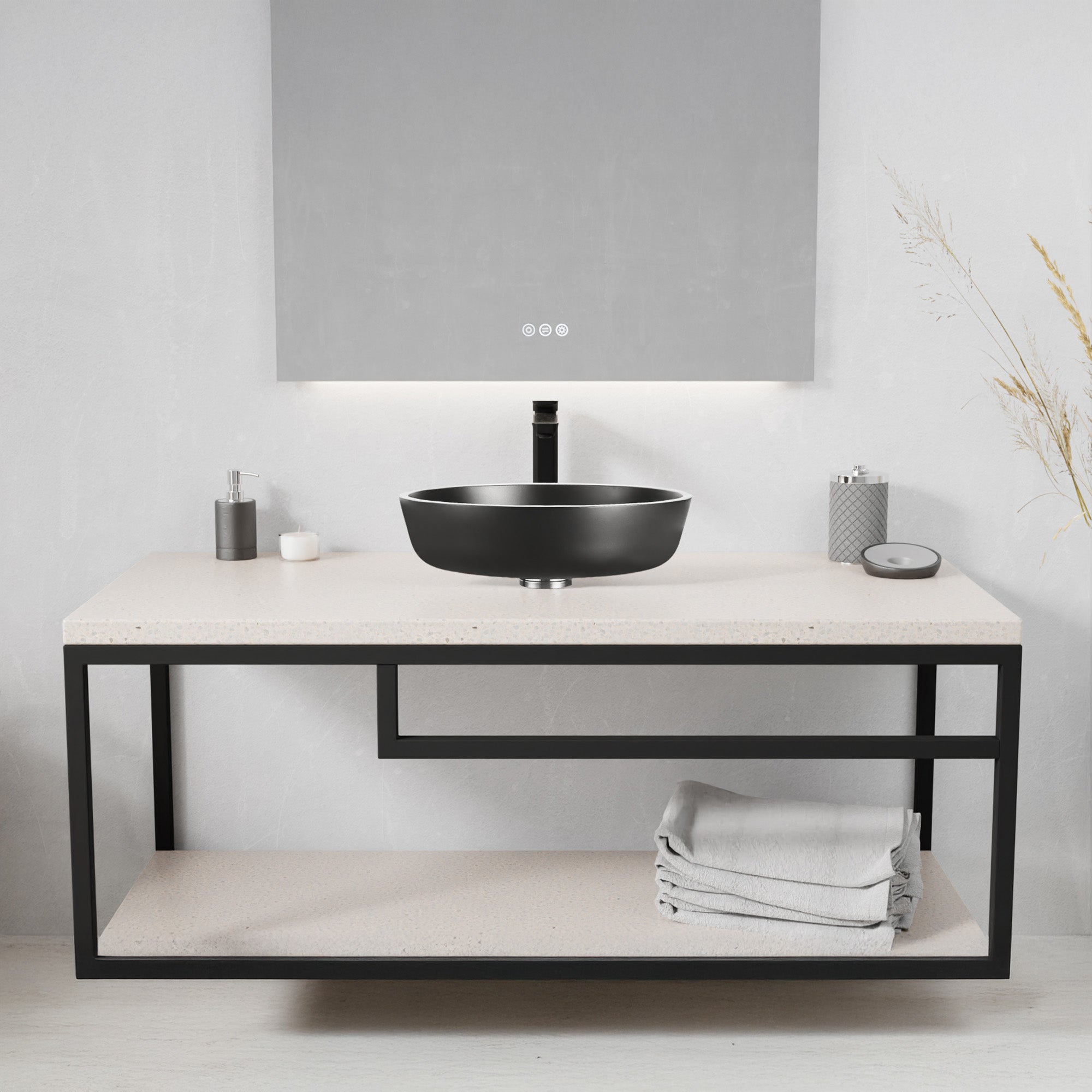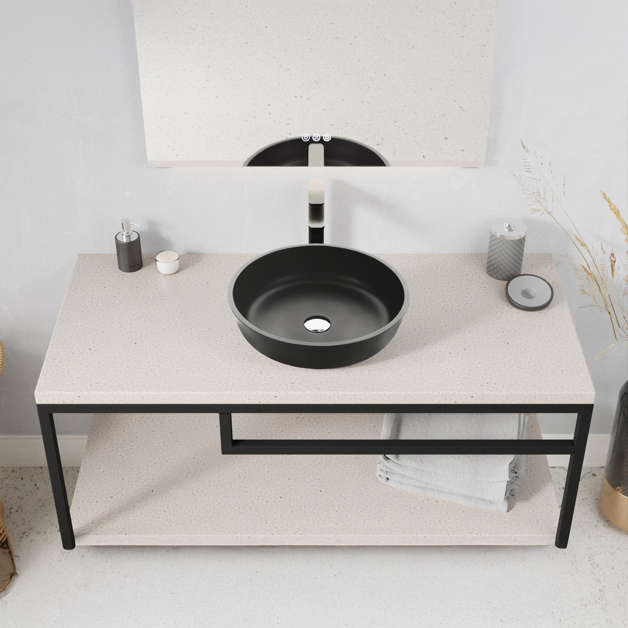 Slim, streamlined and sophisticated, our Allegro sink gives your bathroom the allure of a modern art installation without sacrificing functionality. The premium glass basin is finished in a bold Matte Black that’s both on-trend and timeless. The vessel design mounts to the top of your vanity or countertop (instead of into it) for a chic and unique look that frees up space in the cabinet below. The compact style makes it perfect for smaller powder rooms. Includes a chrome pop-up drain.