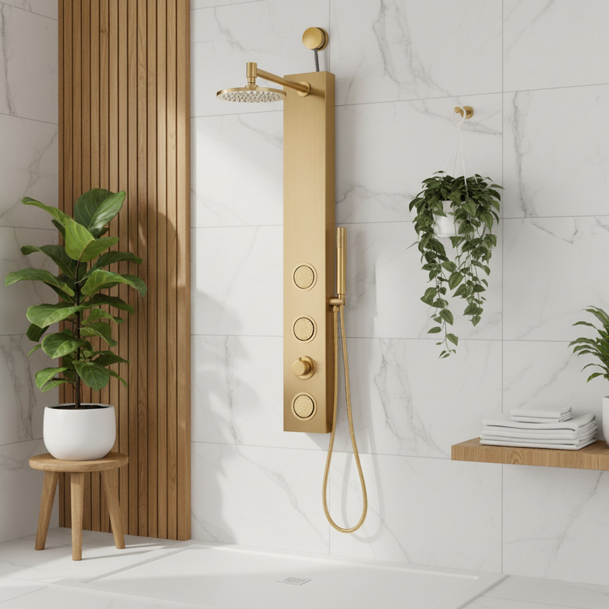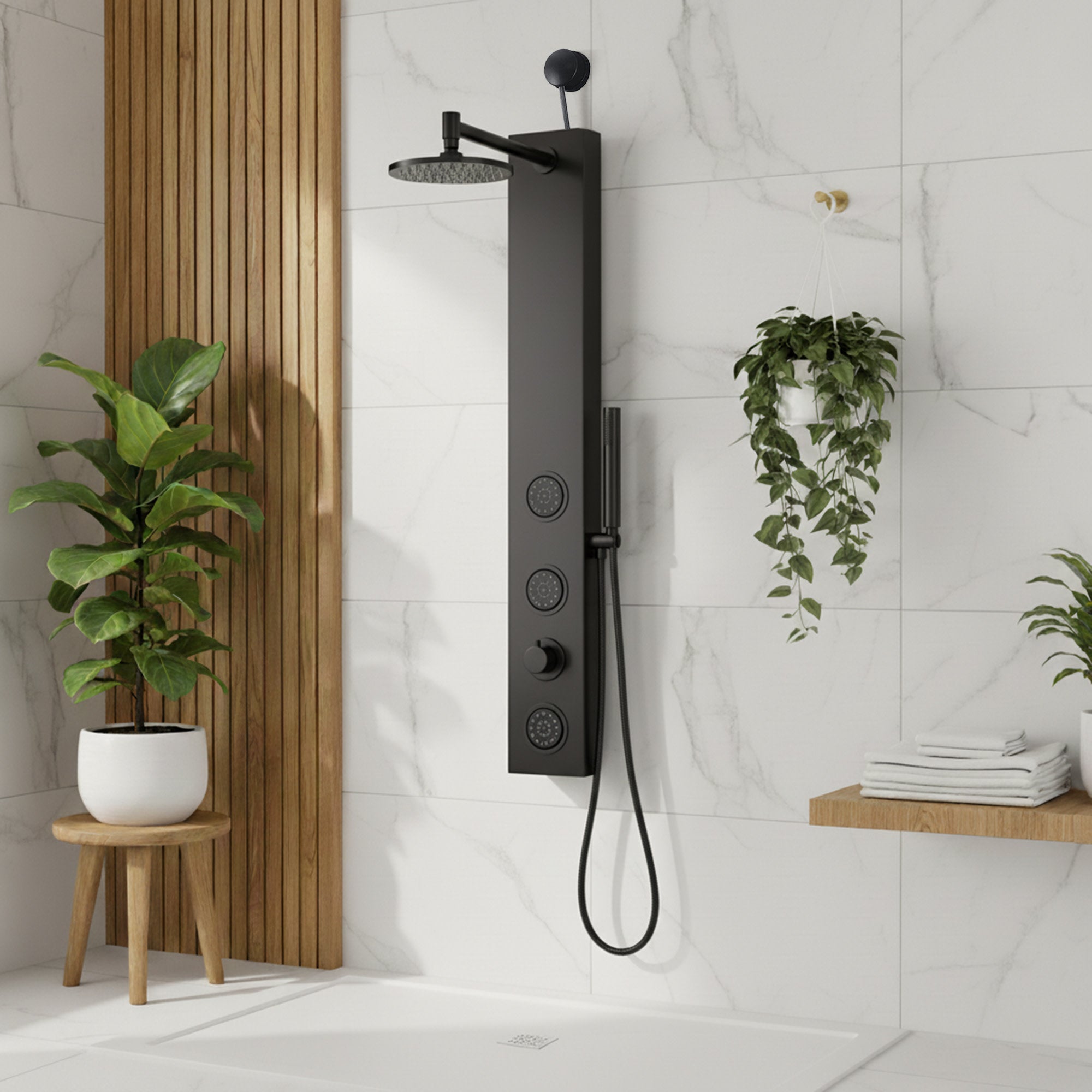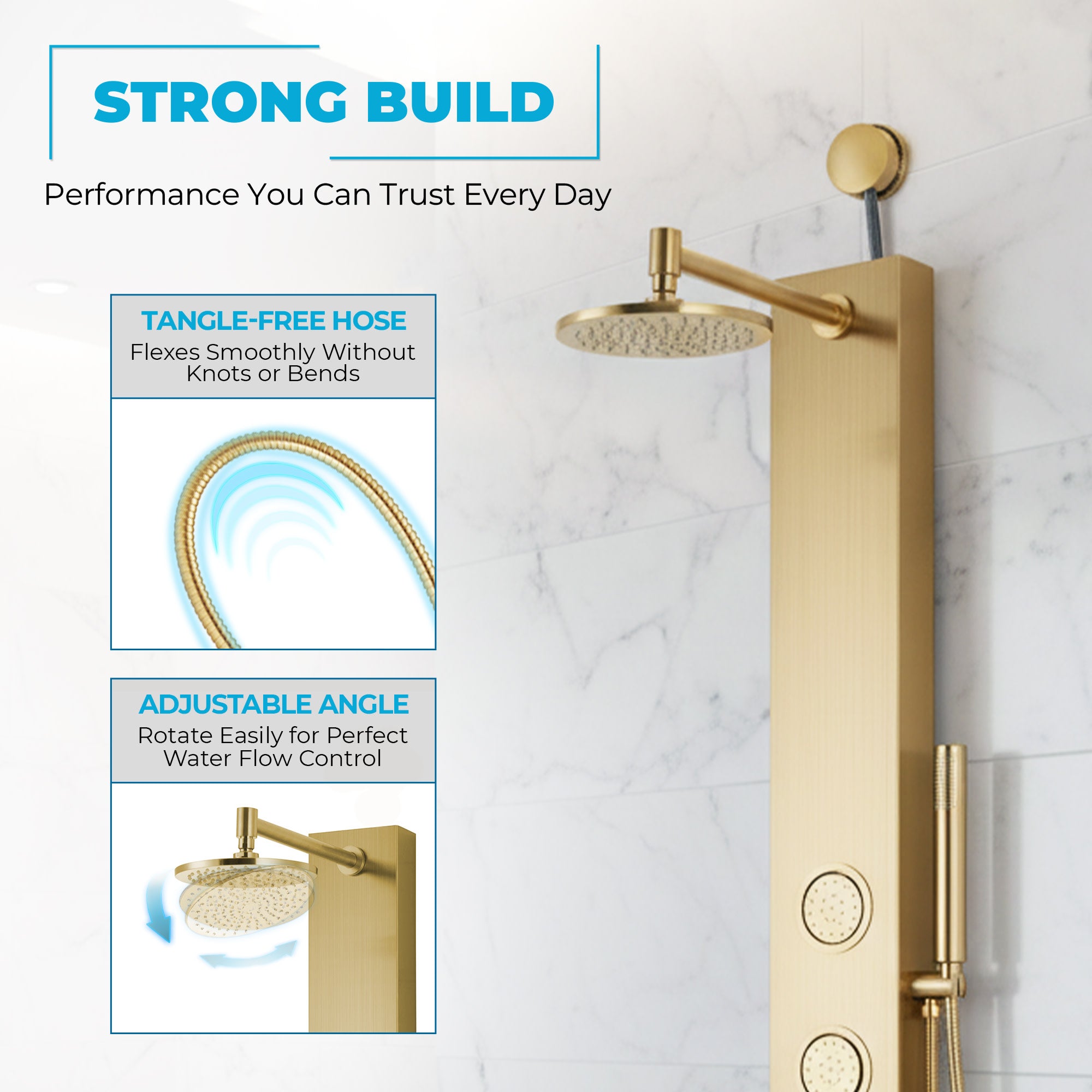 Transform your daily shower into a spa-like escape with the Beverly Series in Matte Black, Brushed Nickel and Brushed Gold. This easy-to-install upgrade uses your existing water line, eliminating the need for extensive plumbing work or wall alterations. With three Acu-Stream jets for a soothing body massage, a Heavy Rain shower head that cascades water from above, and a Euro-Grip handheld sprayer with a 60-inch reach, the Beverly Series combines elegance and functionality to redefine your shower experience.
