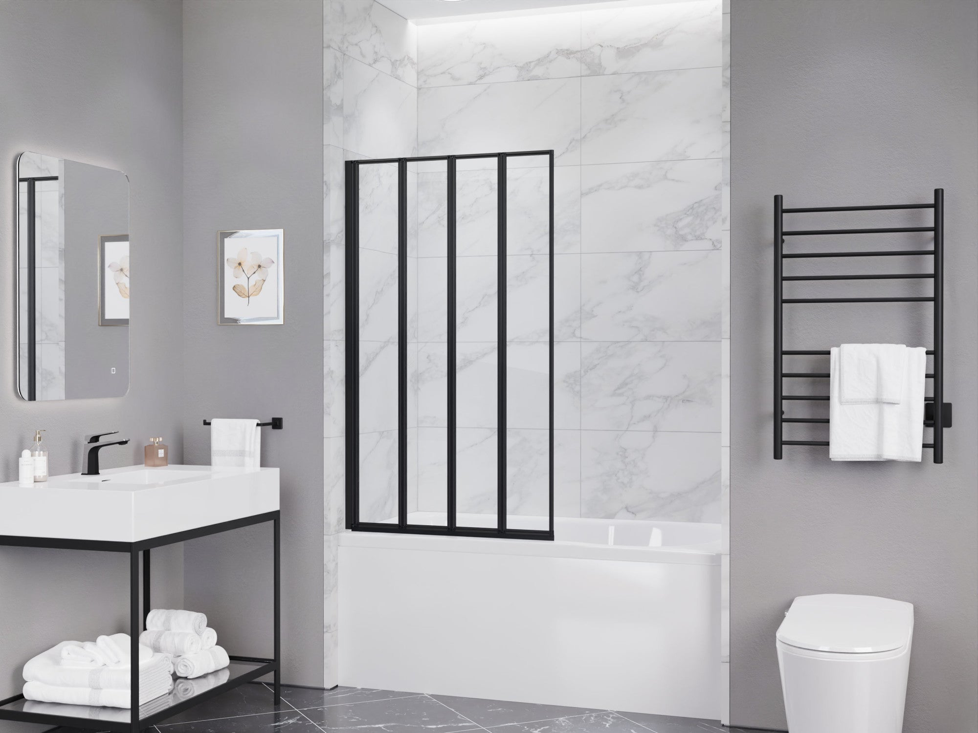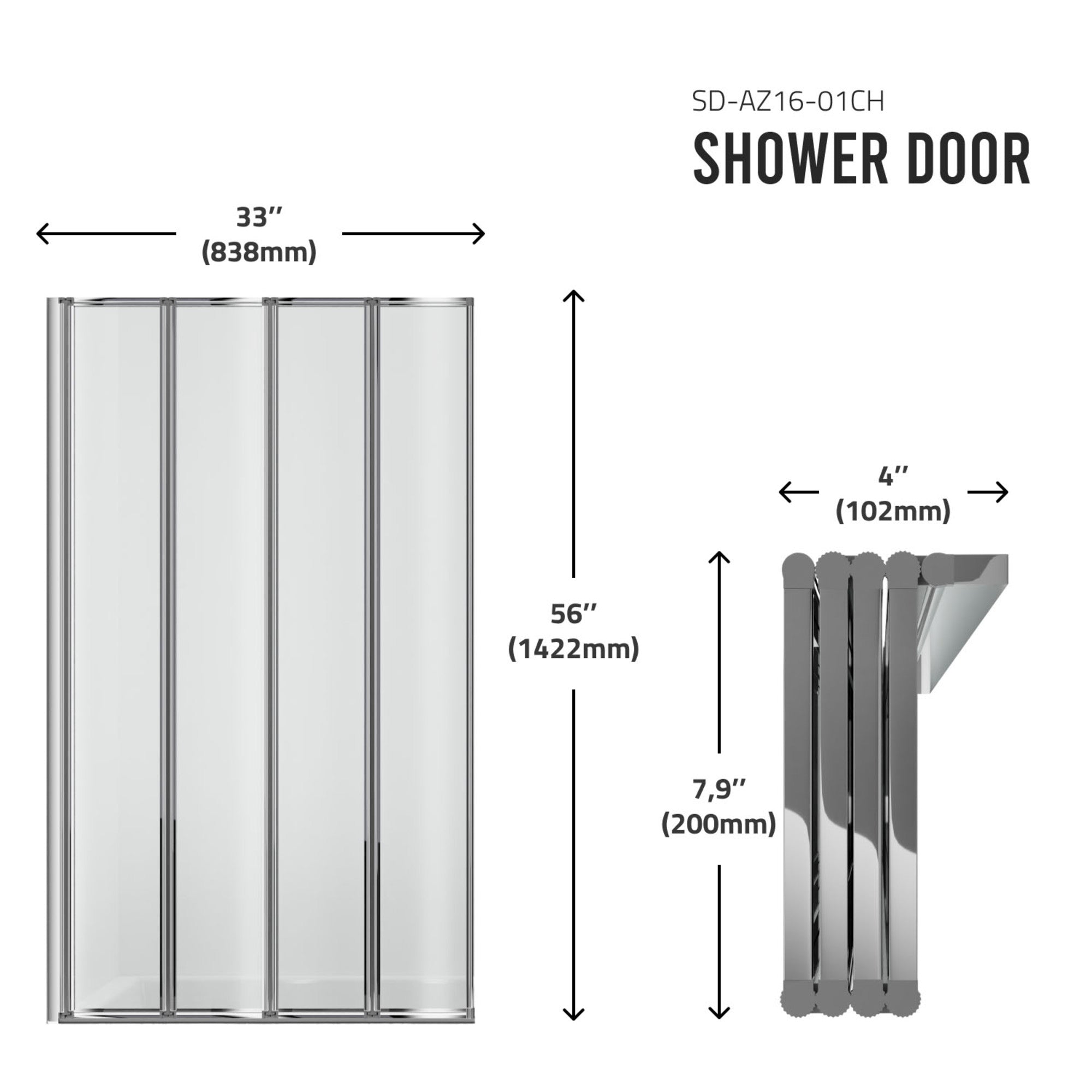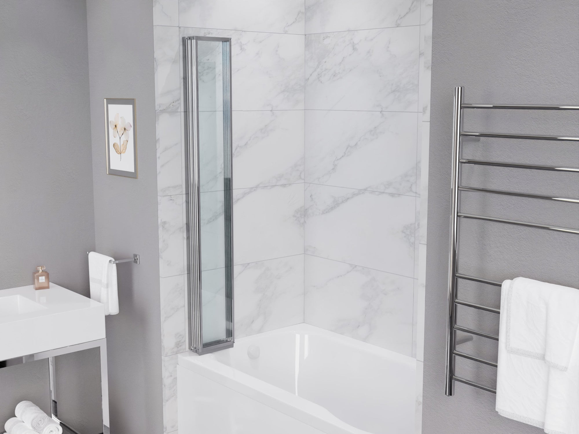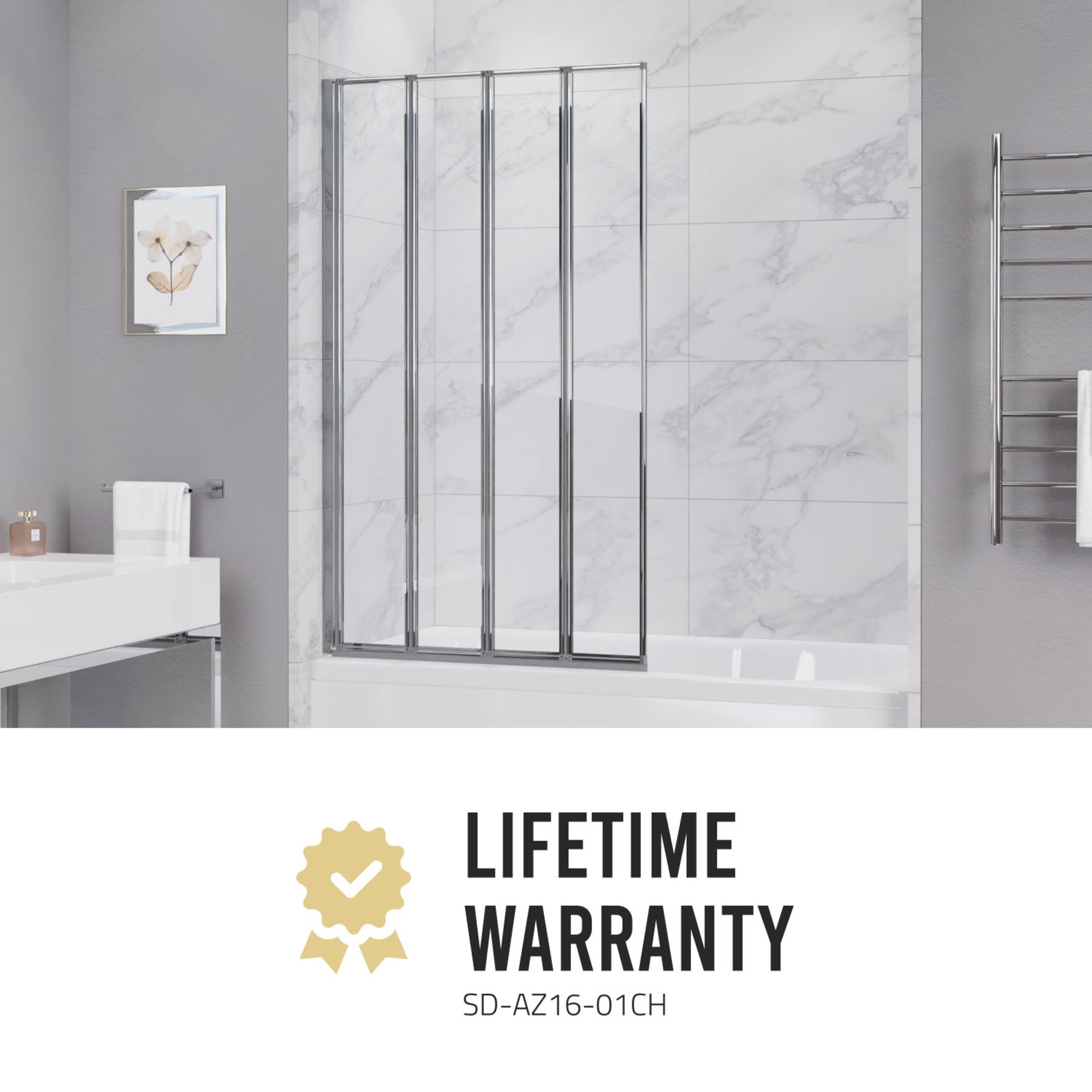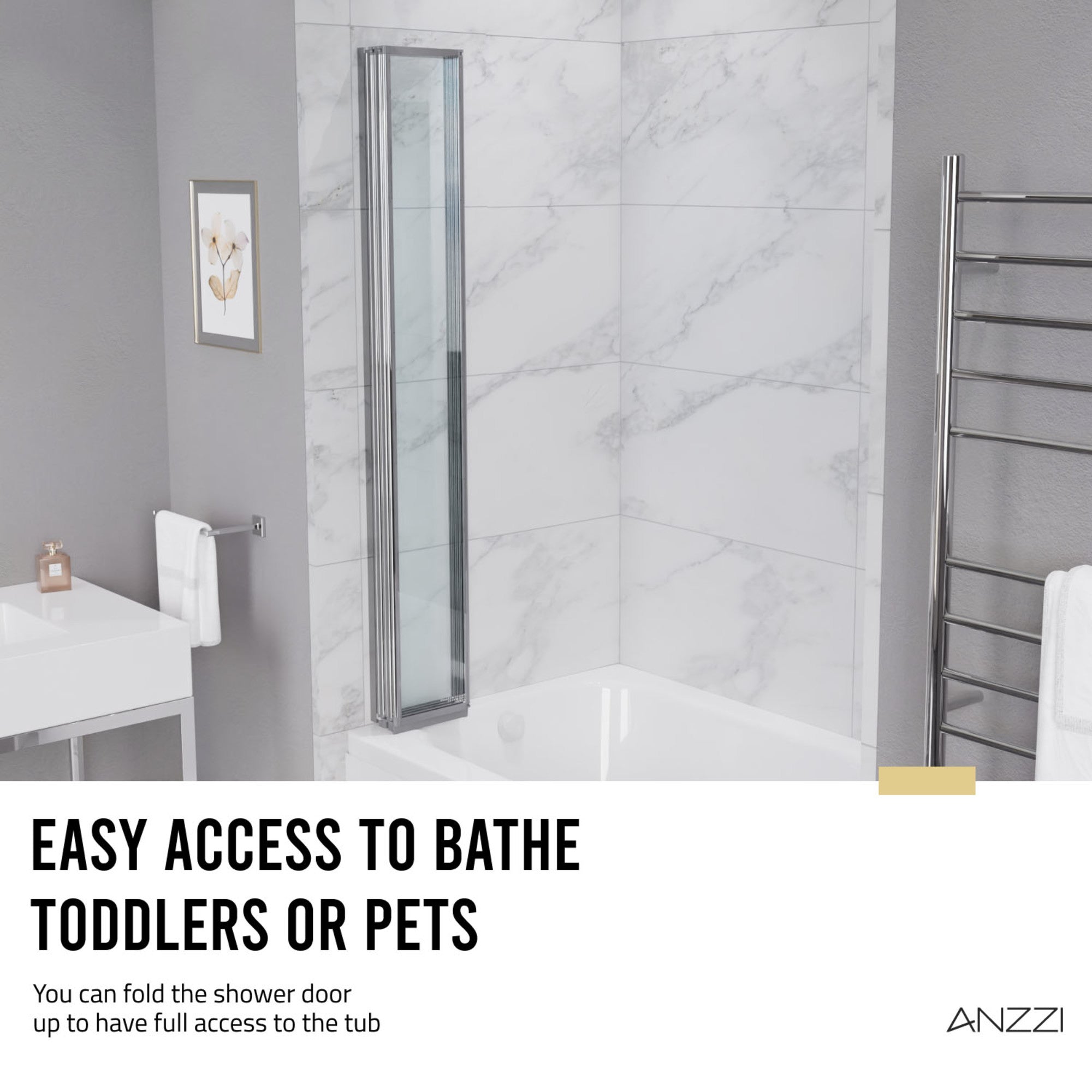 You’ll love the way our sleek, stylish accordion shower door combines modern flair with everyday functionality — just install to your existing tub to create an elegant, enclosed shower space. The hinged panels fold flat for easy access, making it simple to bathe toddlers or pets. ANSI-certified, tempered glass panels stay crystal-clear thanks to Tsunami Guard shielding that prevents cloudy build-up. Rhino Alloy-certified frames and hardware have a beautiful Chrome finish.