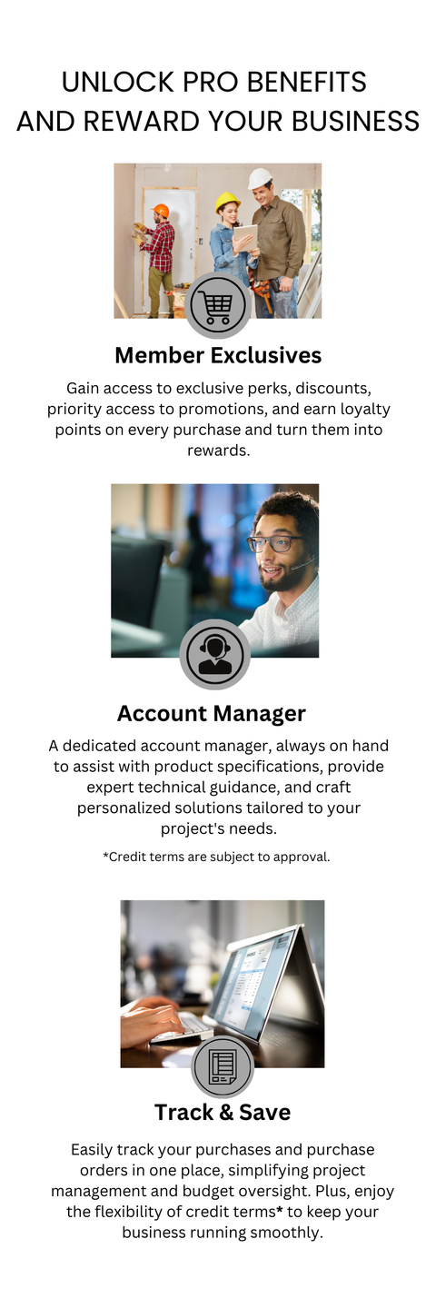 Whether you're a general contractor, interior designer, or specialist managing large projects, ANZZI PRO is here to simplify your workflow and provide valuable resources like builder spec sheets for more efficient planning and execution. With the support of a dedicated account manager and flexible credit terms*, we make managing cash flow and tracking purchases easier than ever.
