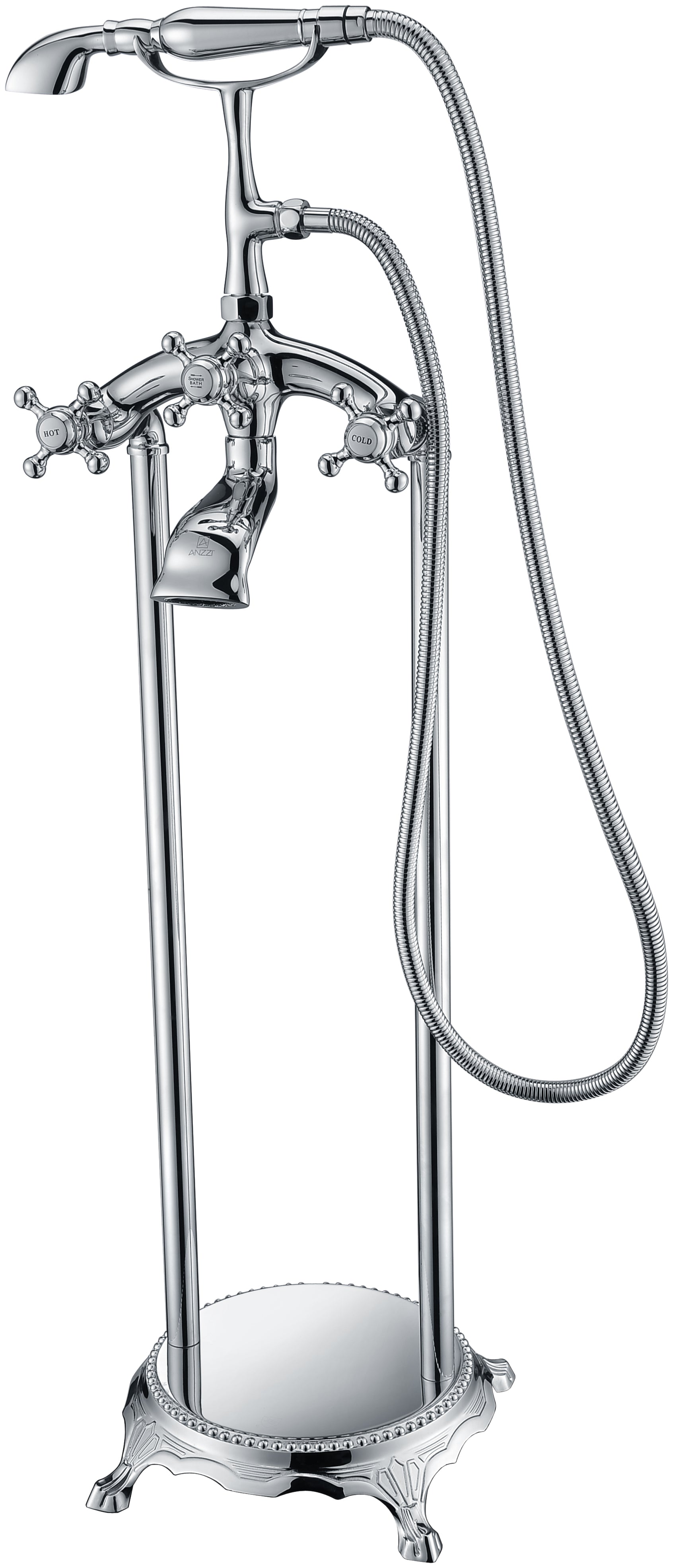 ANZZI has brought art to life in the form of an elegantly crafted full sized freestanding and claw foot tub floor mounted faucet. The ANZZI Suni series features 3 handle control design, powerful tub filling spout and far reaching hand held sprayer. All this is suspended atop a floor mounted freestanding architecture in matte black, brushed nickel and polished chrome which housing solid brass interior components. ANZZI freestanding faucets are crafted for looks and built for reliability.