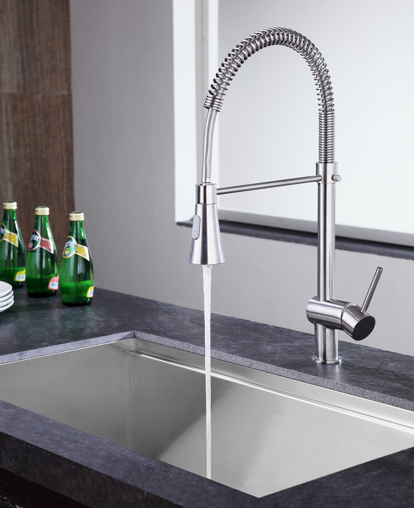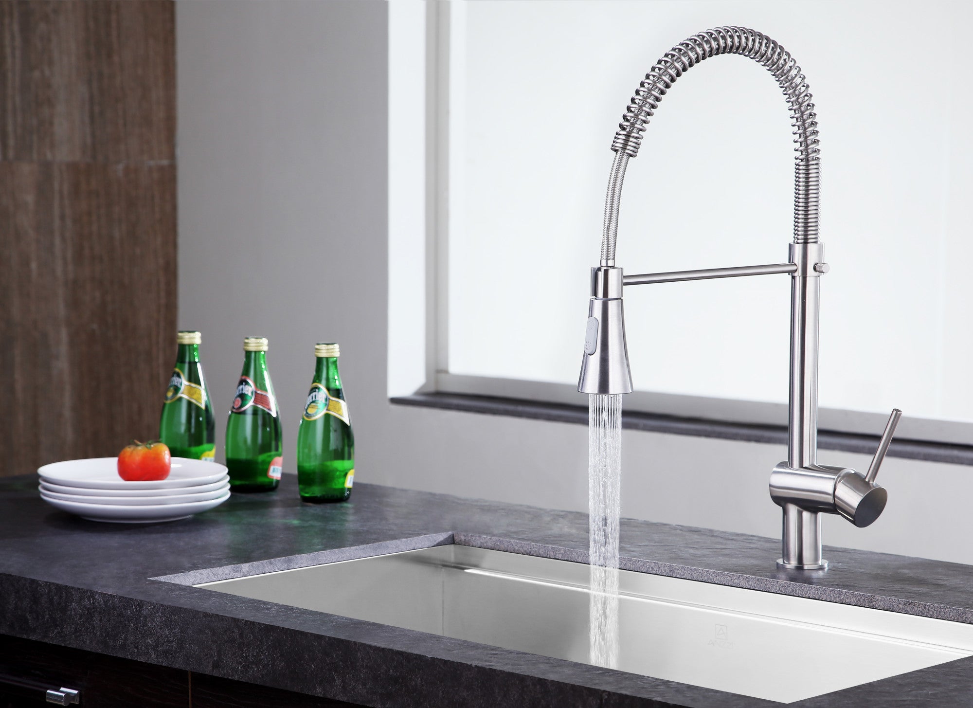 ANZZI is committed to introducing the latest in European bath fixture design to the North American home. ANZZI presents the Carriage single handle kitchen sink faucet. Crafted using RHINO ALLOY certified brass interior, marine grade ceramic disk and brushed nickel lead-free rust resistant finish. The elegance and style of our ANZZI faucets is matched by their proven performance and reliability. Which is why our faucets are backed by the ANZZI Limited Lifetime Warranty. Become a member of the ANZZI family and experience why Perfection is our Tradition.