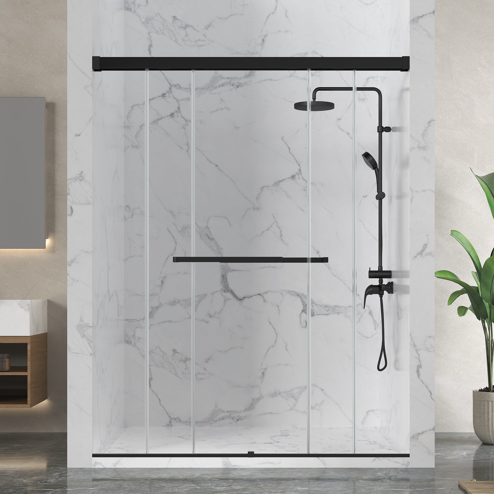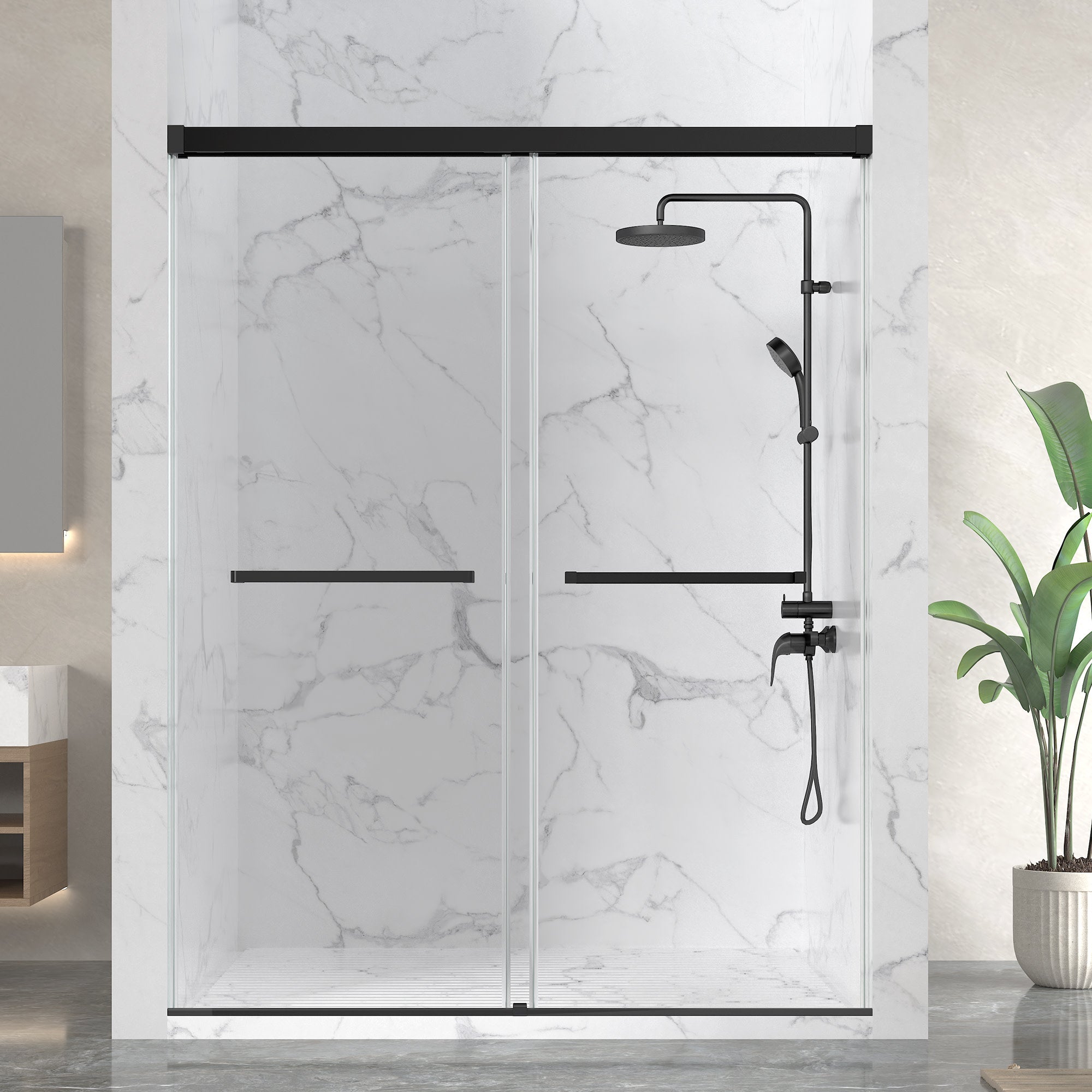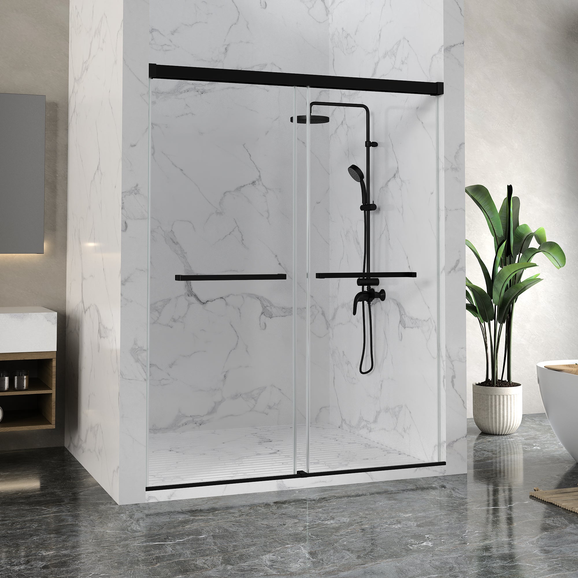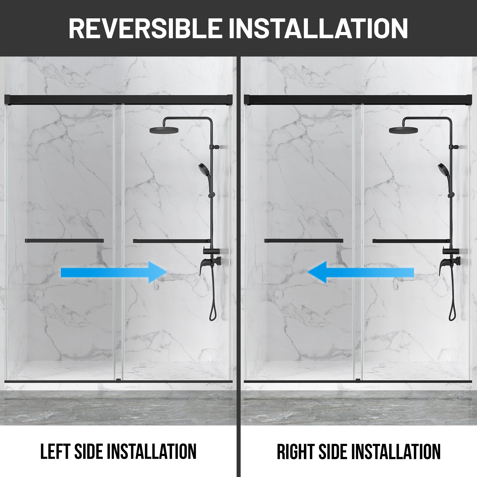 DOUBLE-SIDED SLIDING: Glides smoothly on both sides, offering easy access and a graceful entry to your shower space.