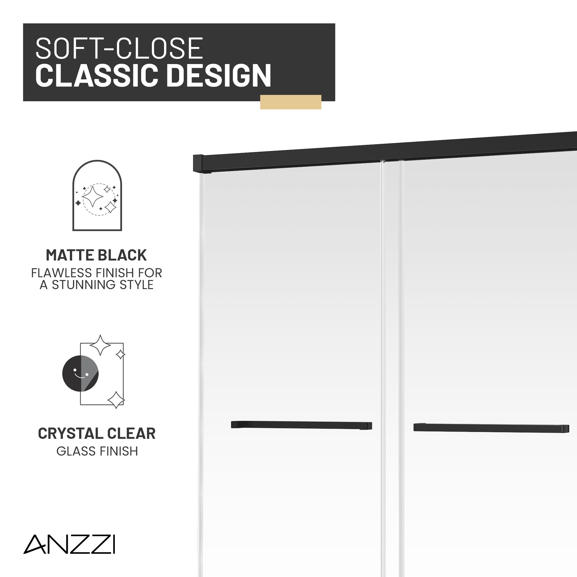 SOFT CLOSURE FUNCTION: Smooth, gentle closing mechanism ensures the shower door glides quietly and safely.