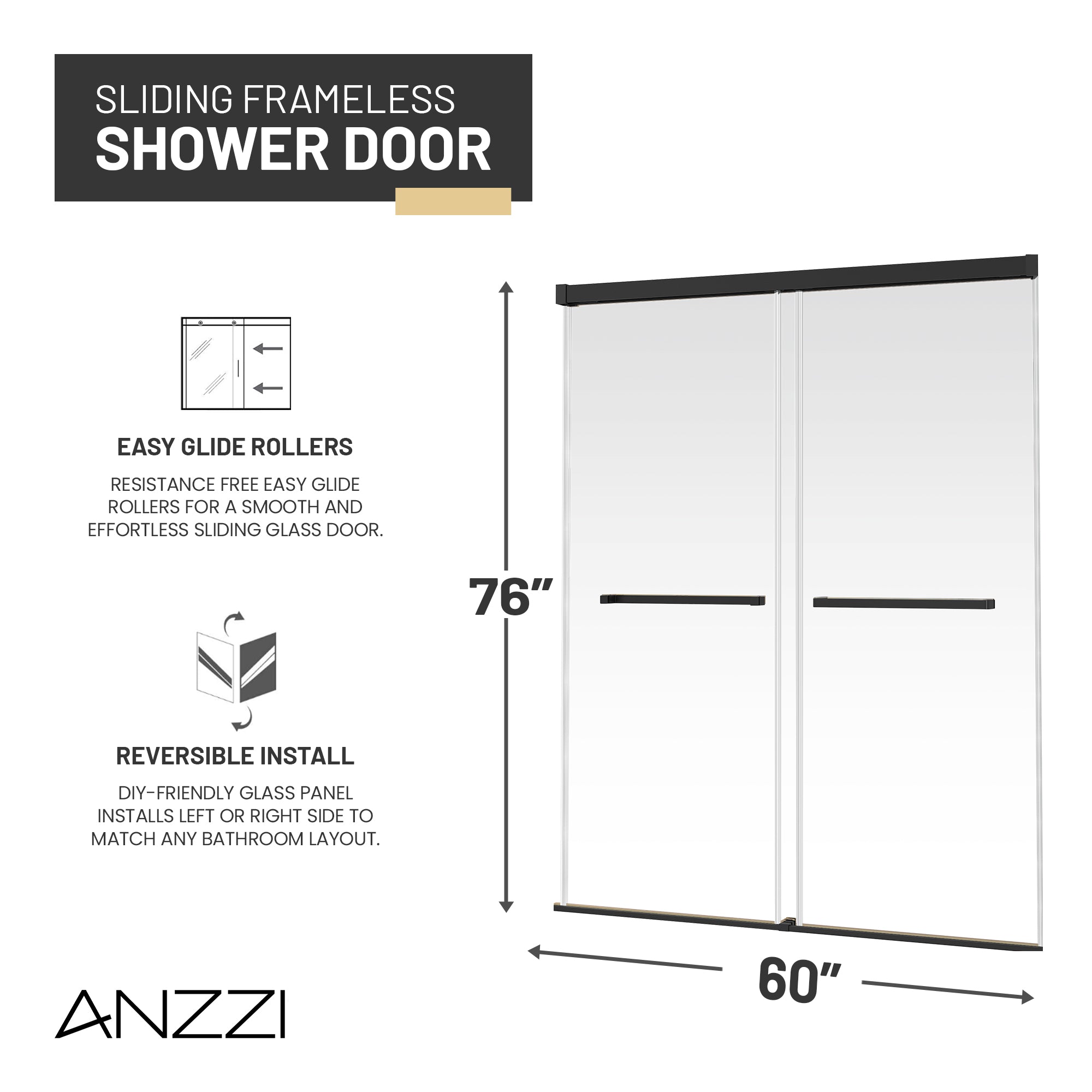 STYLISH FRAMELESS DESIGN: The ANZZI Ward Series frameless sliding shower door design adds modern elegance to any shower.