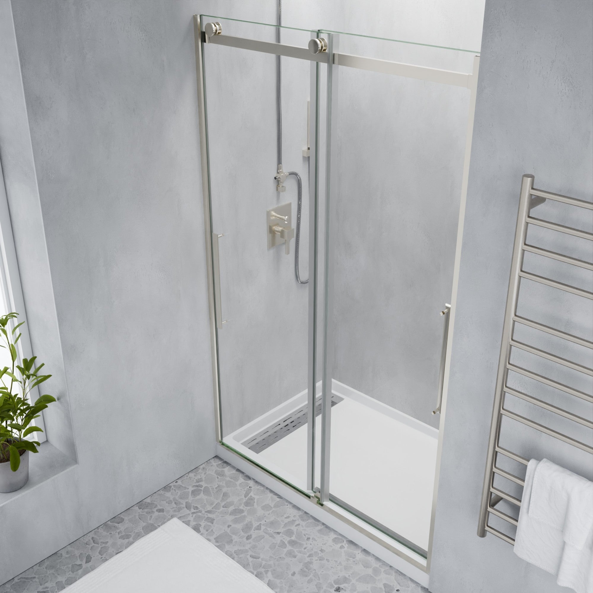 The ultramodern frameless design with double sliding doors gives your shower a premium look